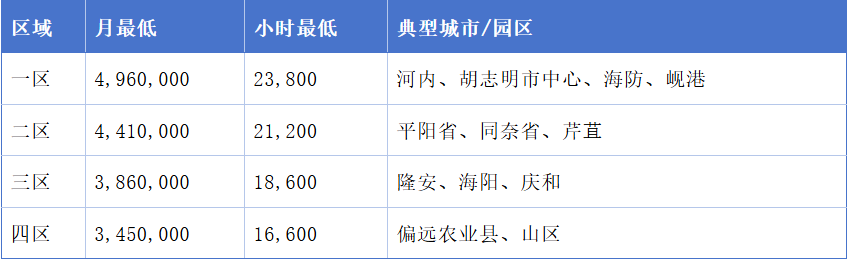 (单位:越南盾/月,含 6% 调薪,已自 2024-07-01 执行,2025 继续沿用)