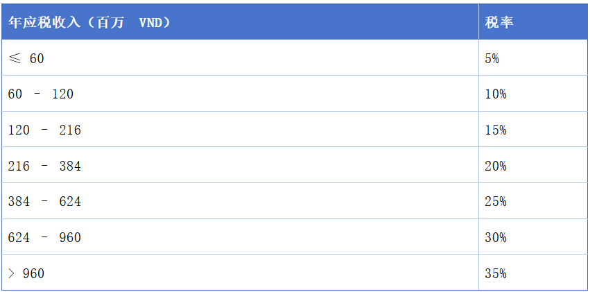 起征点 11,000,000 VND/月(≈3,200 元),每抚养一名子女减 4,400,000 VND。