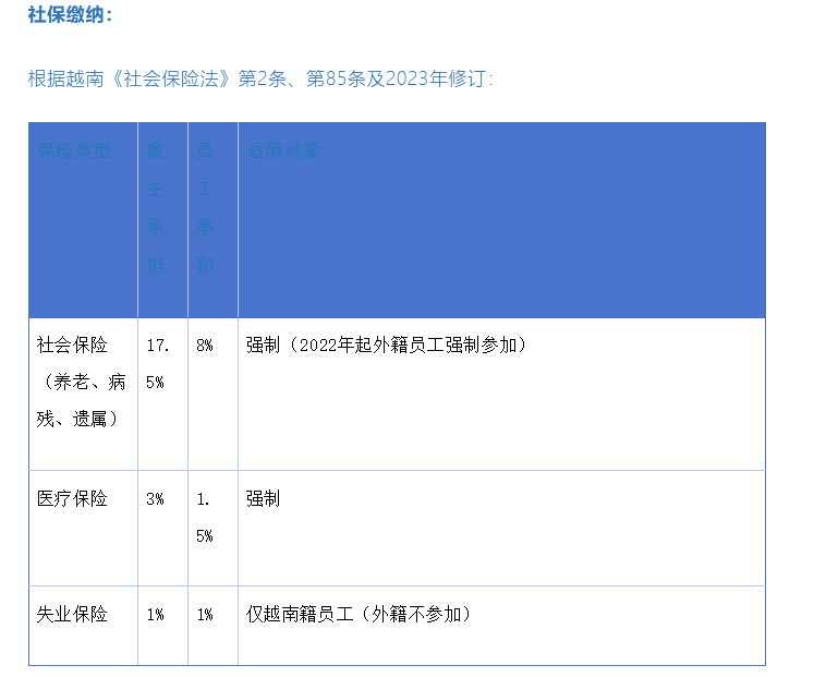 关键变化:2022年1月1日起,在越南工作的外籍员工必须参加社会保险,此前可豁免。