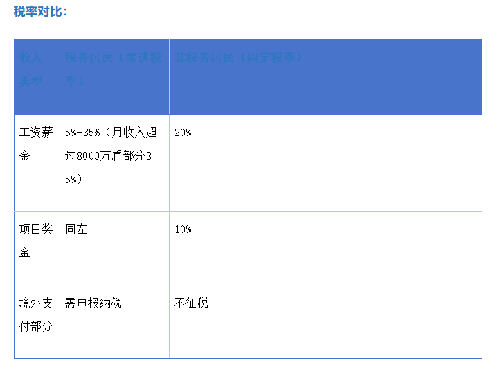 税务居民:在越南居住183天以上或拥有永久居所,全球收入纳税