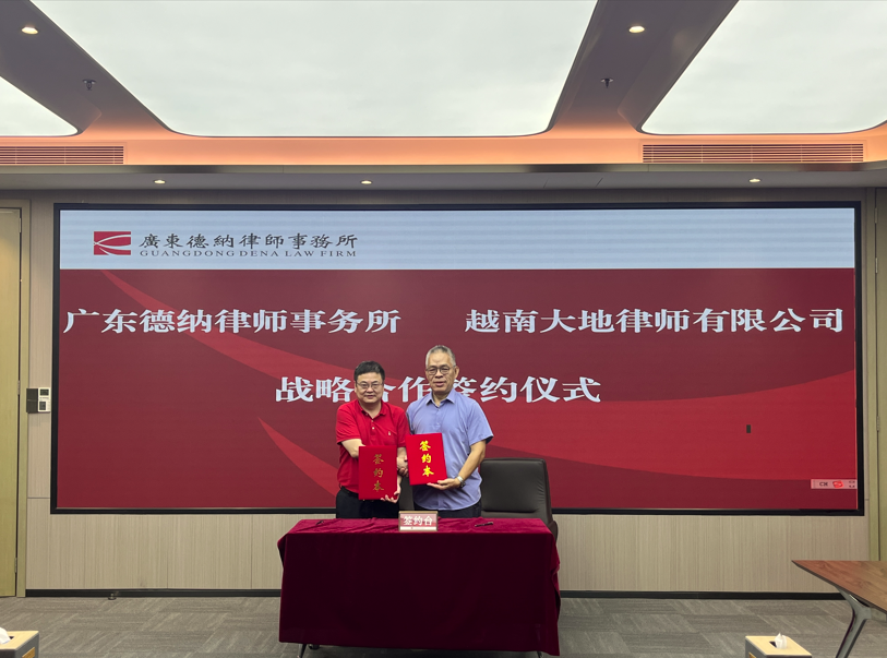 会上,广东德纳律师事务所陈峻峰主任首先详细介绍了德纳律所的发展历程、专业成就等情况。王保林律师介绍越南大地律师有限公司的基本情况。双方签署《战略合作协议》,互享资源,共同为中越企业客户提供高效、跨境的“一站式”法律服务。