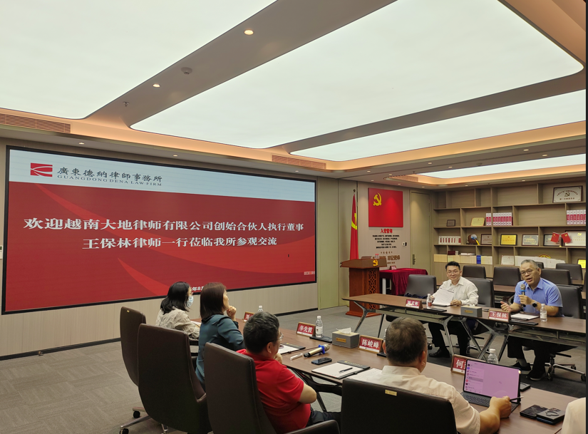 2025年8月11日下午,越南大地律师有限公司创始合伙人执行董事王保林律师、陈孟彬律师一行莅临广东德纳律师事务所调研交流,德纳律所主任陈峻峰热情接待。