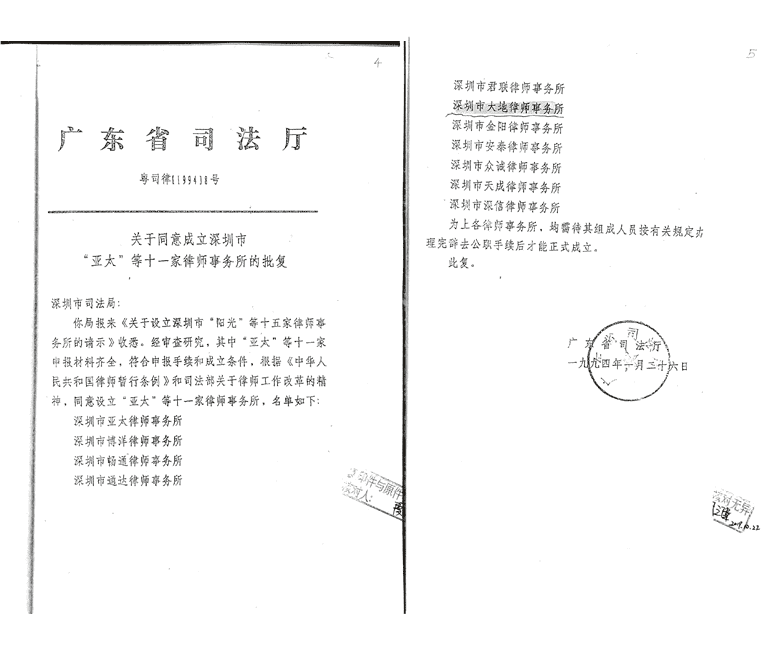 广东深大地律师事务所(原名“深圳市大地律师事务所”,以下简称“本所”)1994年1月26日经广东省司法厅批复成立,系深圳市设立的首批合伙制律师事务所之一。本所办公地址现为:深圳市罗湖区笋岗东路中民时代广场A座12楼,现有(截止2025年6月1日)执业律师48名。本所自成立至今扎根于罗湖区,见证了深圳市改革开放以及中国律师制度的发展历程,为深圳市法治城市建设培养了一批有一批的人才。本所默默服务于深圳这片大地,深爱这边大地。在粤港澳大湾区和深圳现行示范区“双区”建设的新时代背景下,本所将继续脚踏实地投身深圳及大湾区建设,扎根深圳大地、扎根中国大地、扎根世界大地。​